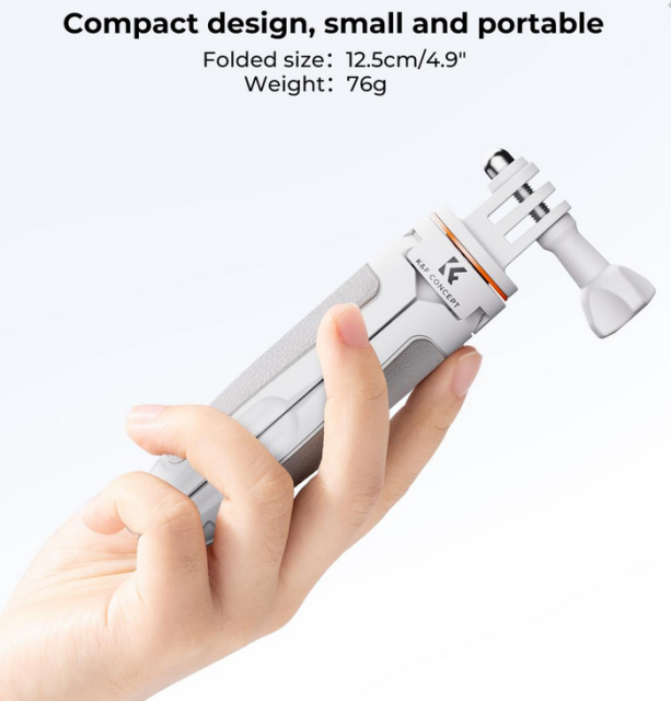 A K&F MS03 okostelefonos állvány narancssárga-szürke színben egy sokoldalú és hordozható megoldás a fotózási és videózási igényekhez. A 32 cm-es maximális magassággal és az 5 szakaszos lábállítással könnyedén beállíthatja a kívánt magasságra. Ez az állványfej 2 kg terhelhetőséget támogat, így alkalmas GoPro, DJI Osmo Action és Insta 360 eszközökhöz. Beépített ütéscsillapító gumigyűrűje stabilitást és szilárdságot biztosít, míg a kiszélesített fix szerkezet és az alján lévő csúszásmentes szilikonbetét fokozott alátámasztást biztosít. A mindössze 67 g súlyú állvány könnyen hordozható, és tökéletes utazáshoz és kültéri felvételekhez.