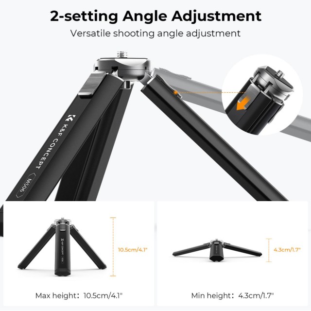 K&F Concept fém mini telefonos fényképezőgép állvány, 1/4" csavaros asztali állvány, 2 szintes magasságállítás - 20 kg-ig terhelhető, MS06. Robusztus és stabil:Az állvány kiváló minőségű alumíniumötvözetből készült, ami biztosítja, hogy stabil és könnyű legyen. Stabil támaszt nyújt a fényképezőgép, a mobiltelefon és a stabilizátor számára, hogy elkerülje a fényképezés közbeni esetleges rázkódást és remegést.