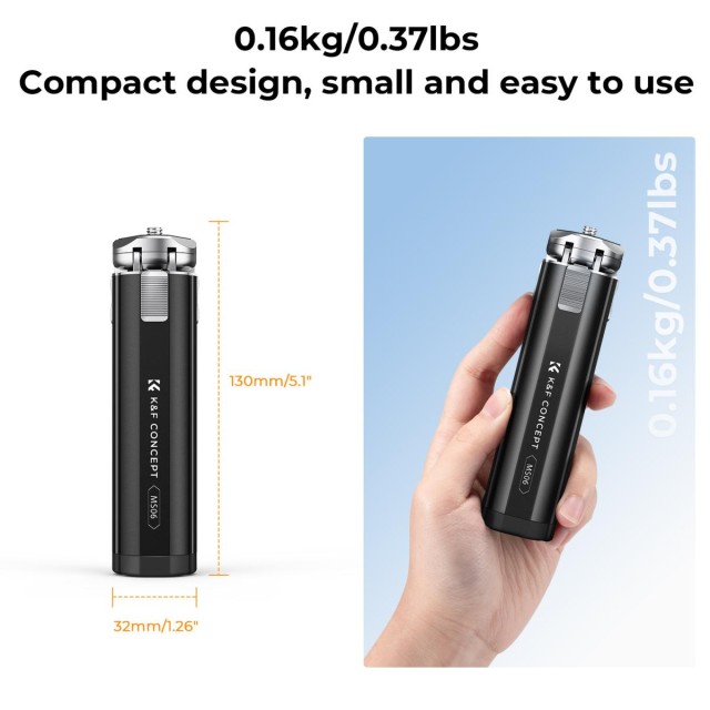 - * Könnyű és hordozható: A 130mm / 5,1 hüvelyk zárt méretével és mindössze 169g súlyával könnyen tárolható, az állvány könnyen összecsukható és tárolható, kényelmesen hordozható és tárolható, alkalmas utazáshoz és szabadtéri felvételekhez.