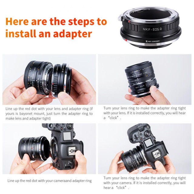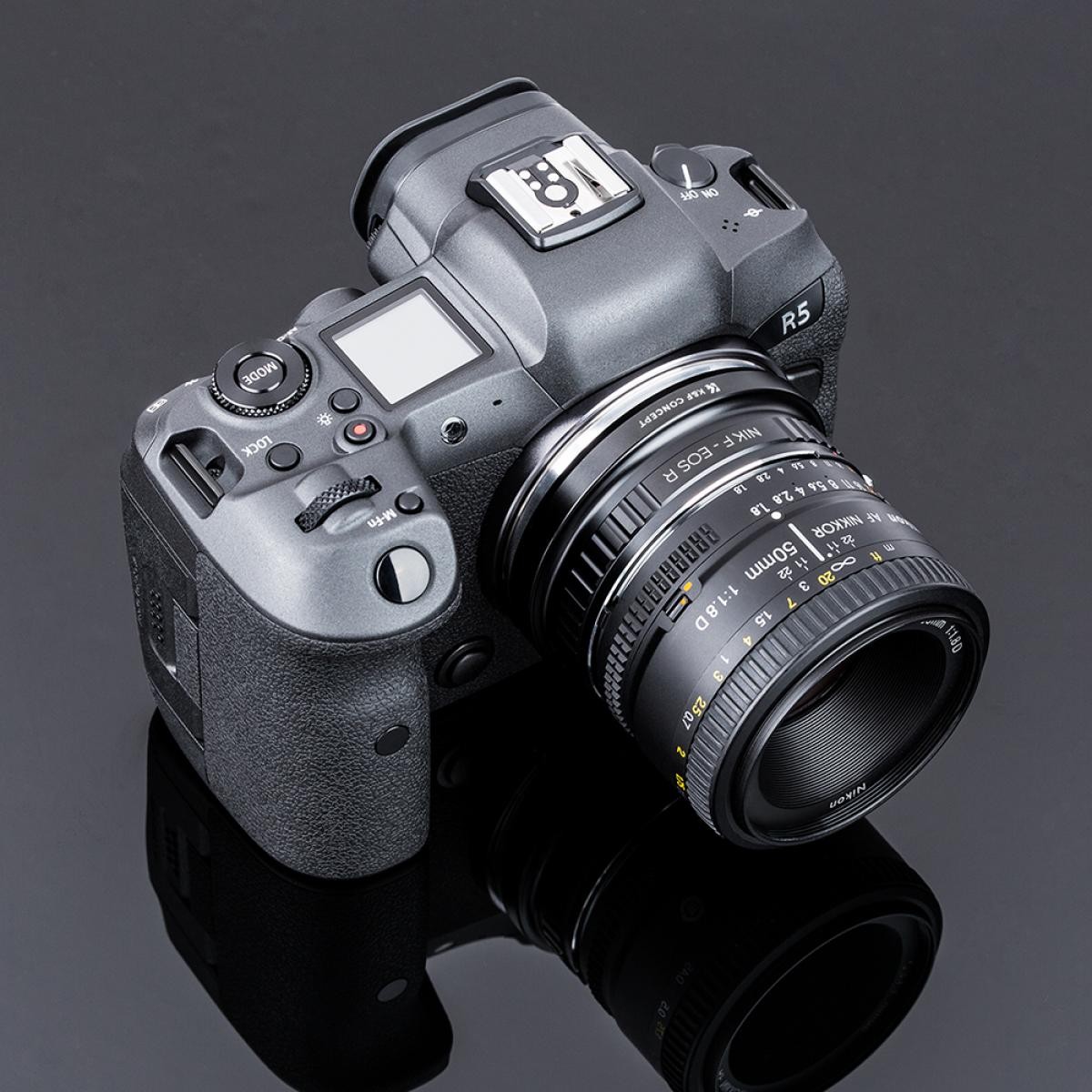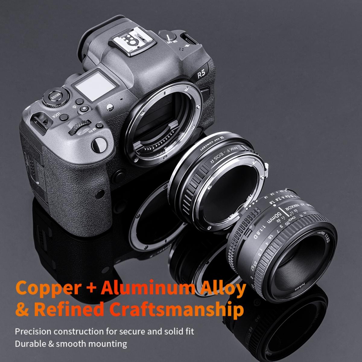A K&F Nikon AI–Canon EOS R objektívadapter lehetővé teszi a Nikon F/AI-bajonettes objektívek zökkenőmentes használatát a Canon EOS R sorozatú fényképezőgépeken. Tartós réz- és alumínium szerkezettel, kézi működtetéssel és teljes végtelen fókusz támogatásával rendelkezik.