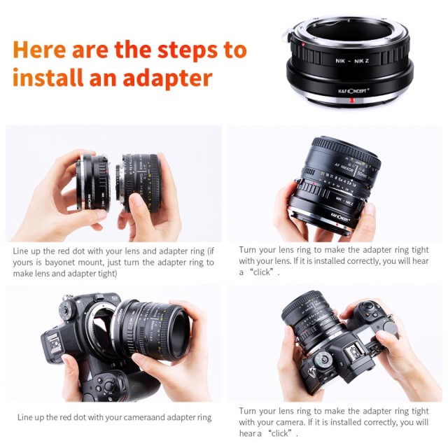 A K&F Concept Nikon AI / AI-S – Nikon Z adapter lehetővé teszi a Nikon F/AI/AI-S objektívek Nikon Z-bajonettes fényképezőgépekre való felszerelését. Sima rézből készült, stabil rögzítést, teljes manuális működést, végtelen fókuszt és egyszerű piros pontos beállítást biztosít.