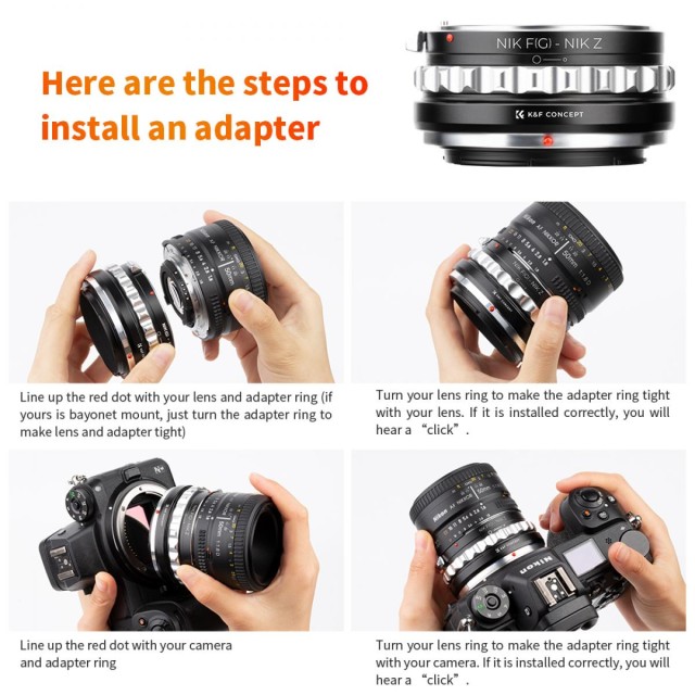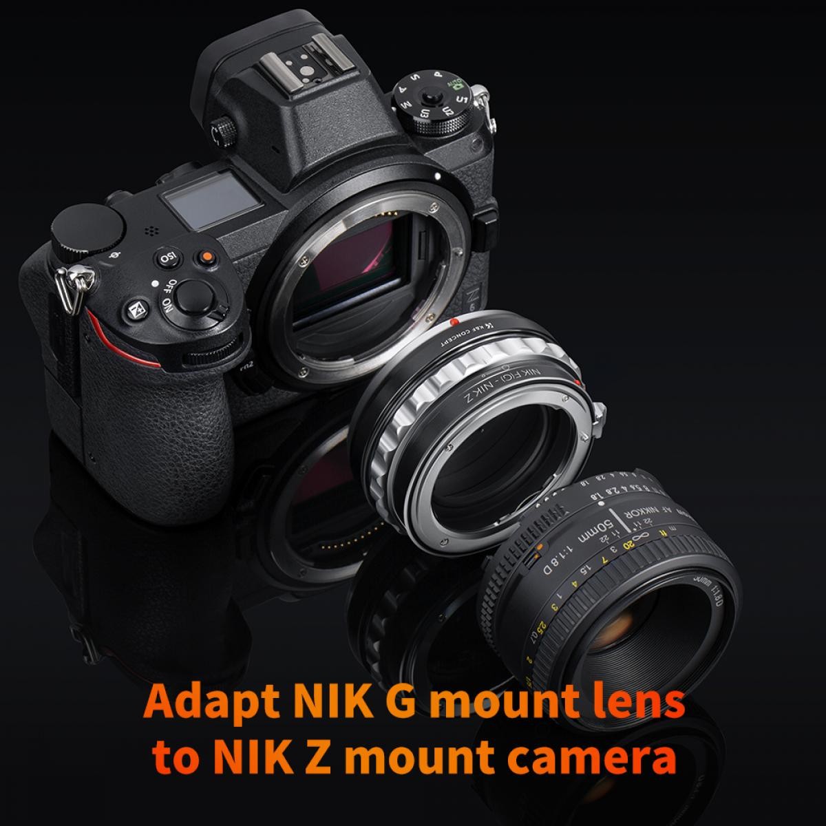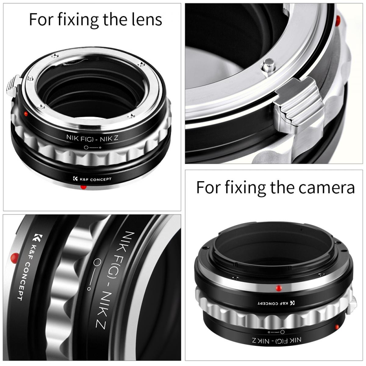 A K&F Concept Nikon G/F/AI/AIS/D – Nikon Z objektívadapter lehetővé teszi, hogy az összes Nikon F-bajonettes objektív – beleértve a G-típusú és a DX-formátumúakat is – használható legyen a Nikon Z-sorozatú fényképezőgépeken. Sima rézből készült, támogatja a teljes manuális működést a beépített csap segítségével történő rekeszvezérléssel, valamint a végtelen fókuszt és az egyszerű piros pontos beállítást.