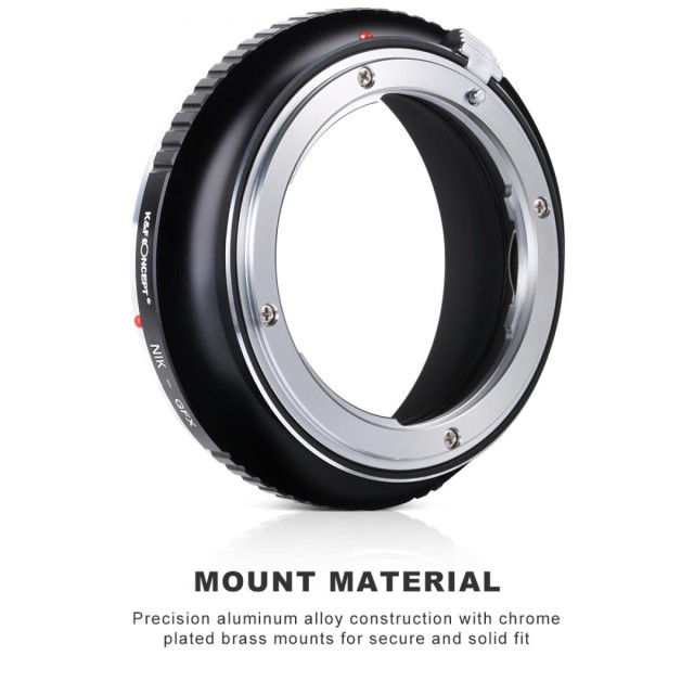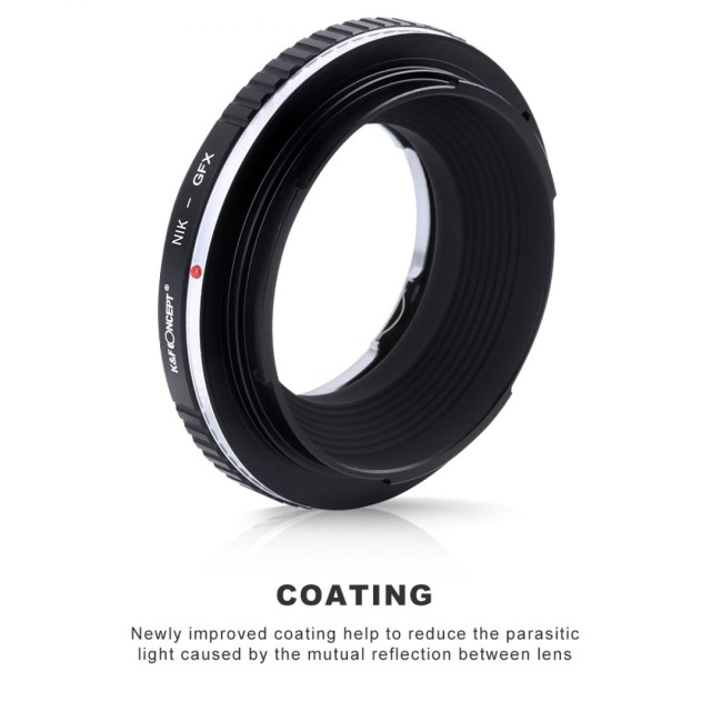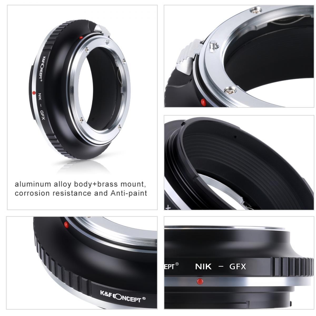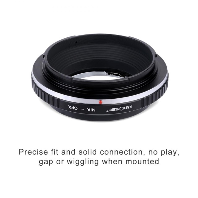A K&F Nikon–Fuji GFX adapter lehetővé teszi a Nikon AI, AI-S és F-bajonettes objektívek használatát a Fuji GFX középformátumú fényképezőgépeken. Tartós fém szerkezettel és teljes manuális vezérléssel rendelkezik.