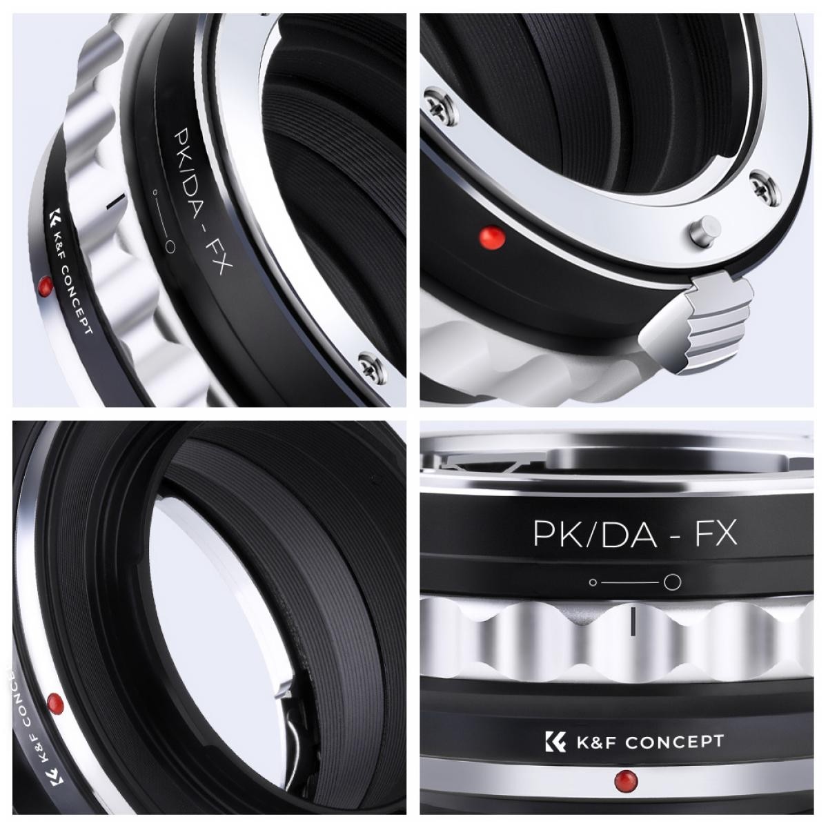 A K&F Pentax K/M/A/FA/DA – Fuji X adapter lehetővé teszi a Pentax objektívek használatát a Fujifilm X sorozatú tükör nélküli fényképezőgépeken. Tartós sárgaréz és alumínium szerkezettel, kézi működtetéssel és teljes végtelen fókusz támogatással rendelkezik.