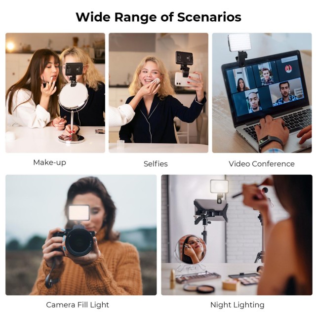 - * 【Trinity multi-scene kompatibilitás】: A töltőfény a mobiltelefon, laptop, táblagép vagy számítógép képernyőjére csíptethető, és 1/4 csavarfurat átalakítóval és hidegcipő adapterrel van felszerelve, valamint fényképezőgépre vagy fényállványra is rögzíthető . Megfelel a különböző jeleneti igényeknek, hozzáadhatja a fényt a felvételhez és a világításhoz.