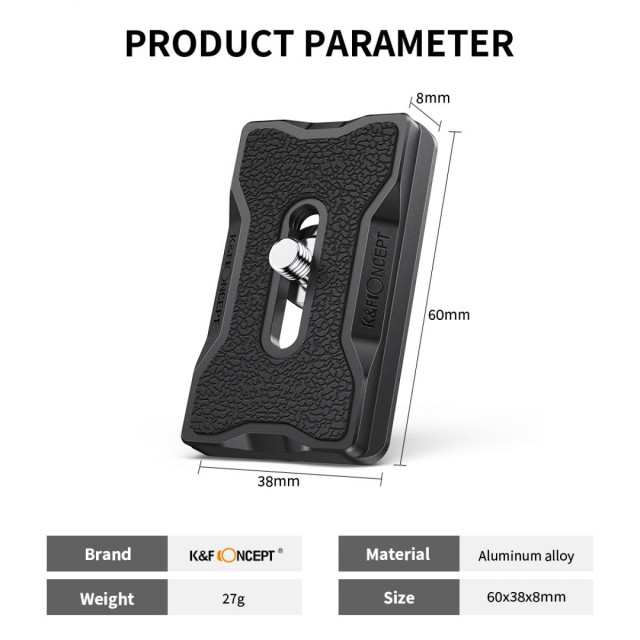 A K&F gyorskioldó lemez egy könnyű és tartós, Arca-Swiss kompatibilis rögzítési megoldás, amelyet a fényképezőgépek gyors felszerelésére és leszerelésére terveztek, miközben biztonságos, csúszásmentes kapcsolatot biztosít a fényképezőgépek és állványok számára.