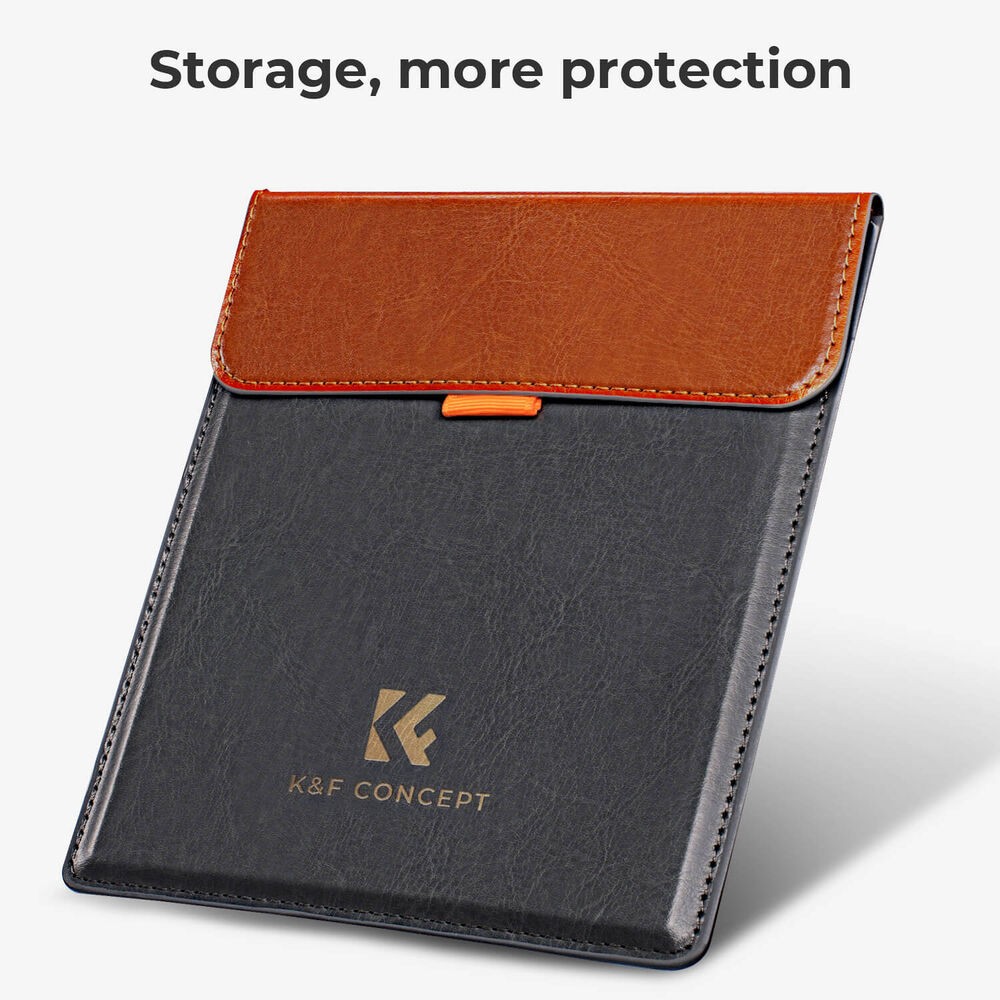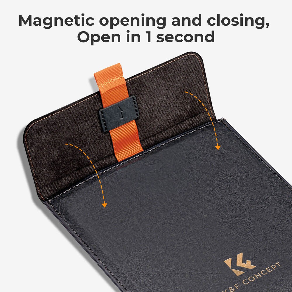 A K&F Concept négyzet alakú szűrőtartó tok egy vékony és védő tároló megoldás, amely egy darab, legfeljebb 100 × 100 mm méretű négyzet alakú kameraszűrő biztonságos tárolására szolgál, hogy az mindig biztonságban legyen és használatra kész állapotban maradjon.