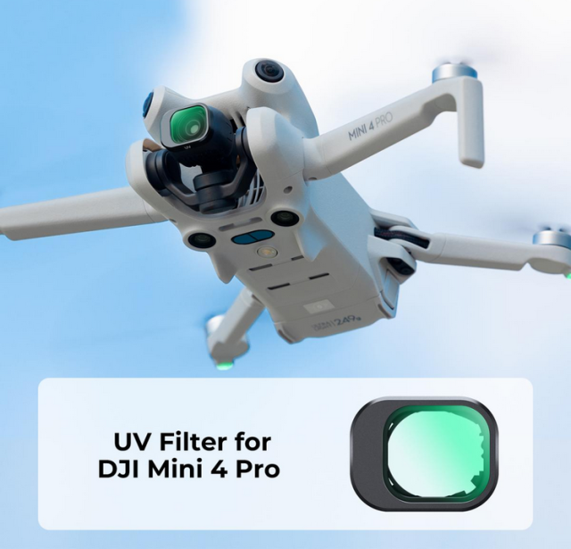 A K&F UV szűrő a DJI Mini 4 Pro-hoz kivételes objektívvédelmet nyújt, miközben megakadályozza az UV-sugarak interferenciáját, biztosítja az élénk képminőséget és megóvja a drón objektívjét.