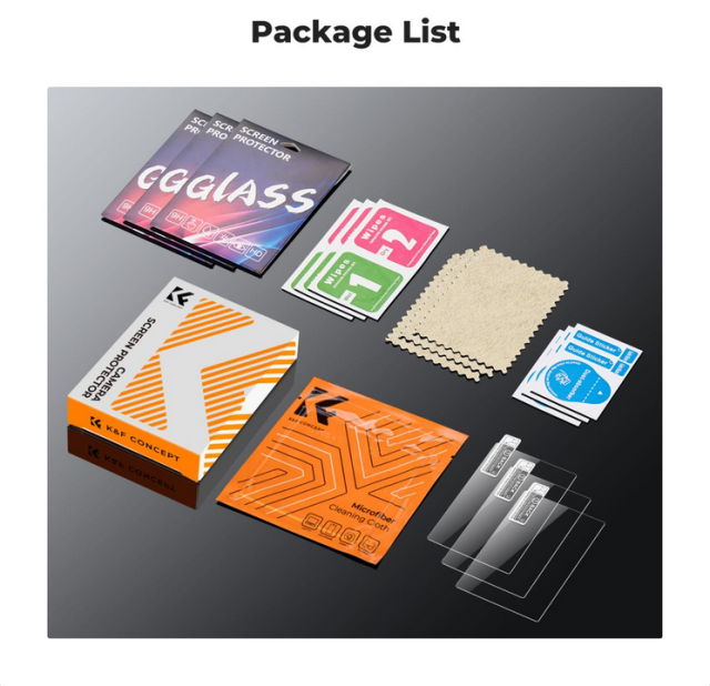 Védje Canon fényképezőgépének képernyőjét a K&F fényképezőgép képernyővédő készlettel, amely olyan modellekre készült, mint a G9X II, G9X, G7X III, G7X II, G7X, G7X, G5X II és G5X. Ez a készlet biztosítja, hogy a fényképezőgép kijelzője érintetlen maradjon, kiváló védelmet és tisztaságot biztosítva.