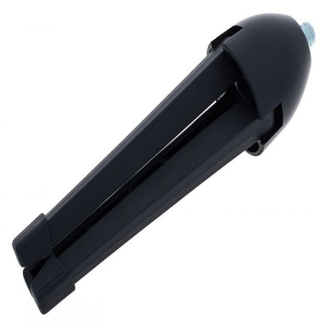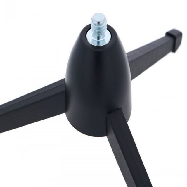Olcsó, praktikus asztali mikrofonállvány professzionális használatra. Stabil műanyag alap, összecsukható könnyű műanyag lábakkal és 3/8"-os menettel.