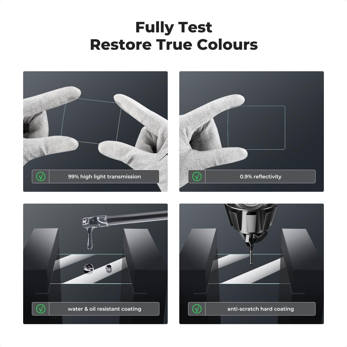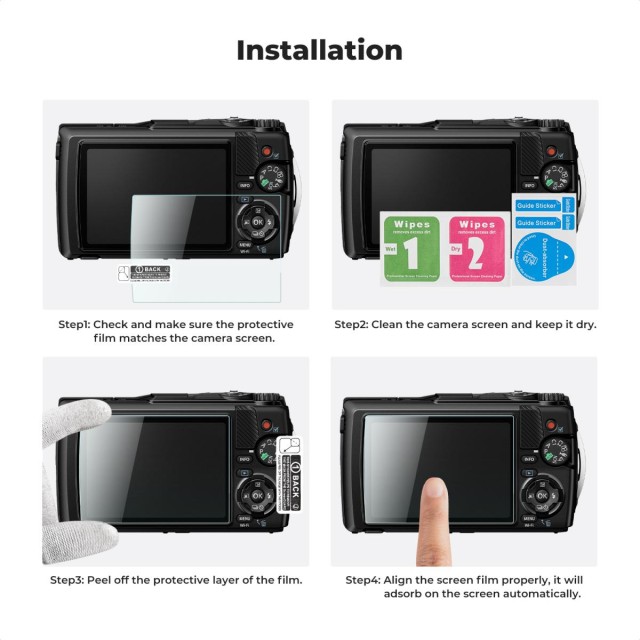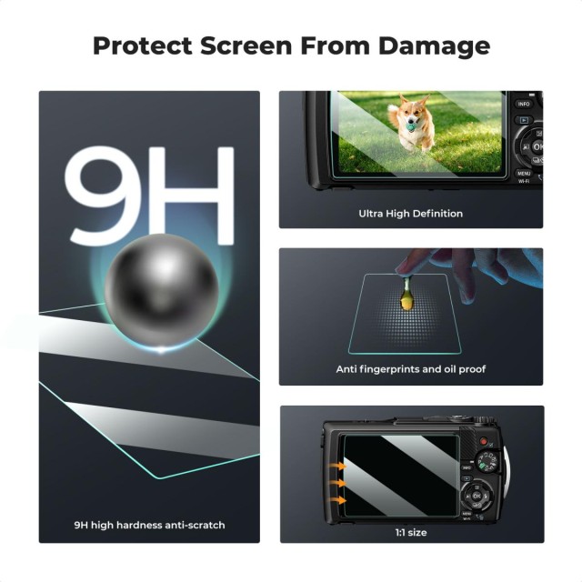 Kiváló minőségű, 9H keménységű edzett üvegből készültek, amely kiválóan ellenáll a karcolásoknak és a szúrásoknak – megbízhatóan védi a fényképezőgép kijelzőjét.