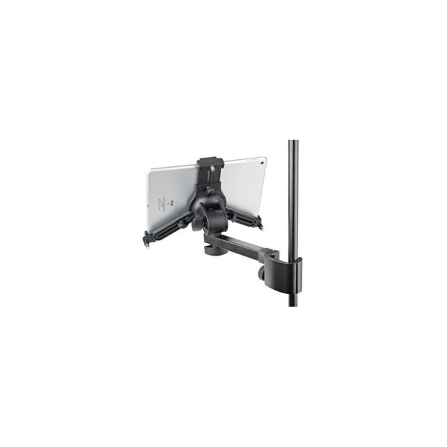 Univerzális tábla/iPad tartó, amely gyorsan és egyszerűen rögzíthető bármilyen, legfeljebb 30 mm átmérőjű állványra. 220/331 mm magas és 128/232 mm széles táblagépekhez és iPadekhez (pl. iPad, iPad Air, iPad Pro, Amazon Fire HDX 8.9, Samsung Galaxy Tab…