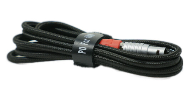 100 W-os fonott tápkábel: 1,5 m-es nylonfonatos kábel, derékszögű 2-pólusú LEMO-kompatibilis hím → derékszögű USB-C hím csatlakozóval. Bármely PD-forrásból (fali adapter, power bank vagy V-mount USB-C PD kimenettel) teljes 100 W (20 V/5 A) teljesítményt biztosít közvetlenül a kamera 11–19 V bemenetéhez – D-Tap és feszültségszabályozók nélkül.