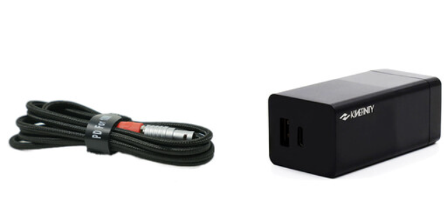 A Kinefinity A941-001-01 készlet tartalmaz egy 100 W-os, fonott, 2 tűs USB-C kábelt + 65 W-os PD hálózati adaptert (EU-csatlakozóval). A MAVO/TERRA készülékeket közvetlenül a hálózatról táplálja, vagy a GripBAT-ot tölti a PD Hybrid Dual Charger segítségével – 90 perc alatt 80 %-ra. Csendes, összecsukható, 5 A-os kábel tartozék.