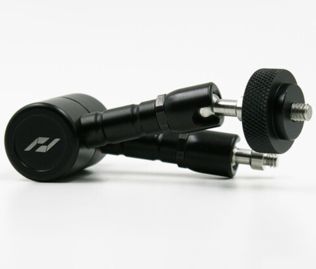A Kinefinity 6" csuklós kar (A612-509-01) egy nagy teherbírású, fémötvözetből készült pozicionáló kar, amelyet professzionális film- és videóberendezésekhez terveztek, és amely akár 4 kg-os terhelést is képes megtartani. Három teljesen csuklós ízülettel és egy központi csavaros reteszelő fogantyúval rendelkezik, amely gyors, biztonságos beállítást és szilárd tartást biztosít bármilyen pozícióban. Mindkét vége 1/4"-20-as külső menettel rendelkezik, így univerzálisan kompatibilis monitorokkal, EVF-ekkel, LED-es lámpákkal, mikrofonokkal vagy kamerakamrákkal. Összecsukott állapotban mindössze 15,2 cm (6") hosszú, így kompakt, mégis hatékony megoldást kínál vállra, gimbalra vagy állványra szerelhető berendezésekhez – ideális azoknak a Kinefinity MAVO/Edge felhasználóknak, akiknek precíz, megbízható kiegészítő elhelyezésre van szükségük, anélkül, hogy az többlet terhet jelentene.
