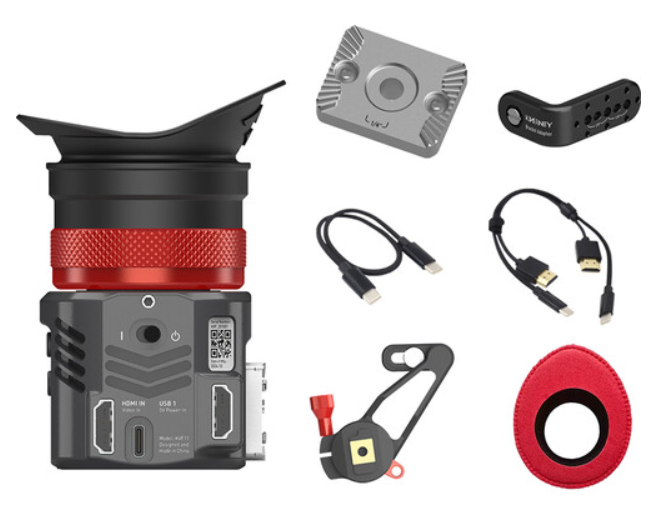 A Kinefinity K911-002-01 EAGLE HDMI e-Viewfinder Core KIT egy professzionális, nulla késleltetésű 1080p mikro-OLED EVF csomag tükör nélküli és filmkamerákhoz, amely tartalmazza az ultrakönnyű EAGLE HDMI keresőt, 9,8 hüvelykes USB-C/HDMI kombinált + USB-C kábeleket, Mini Mount, 1/4"-20 rozetta lemez, csavarodásgátló konzol adapter, szempárna és 1/4"-20-3/8"-16 adapter – fókuszcsúcs, hullámforma, hamis szín és dioptria korrekciót biztosít egy komplett, rögtön használható megoldásban.
