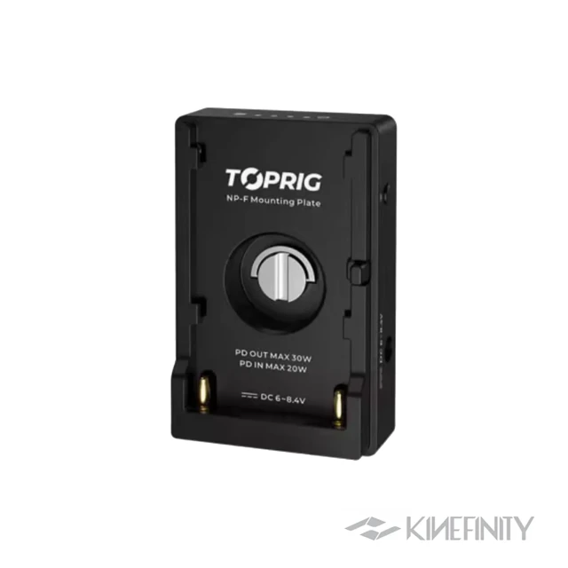 Az Accsoon Toprig Battery Plate támogatja a PD 30W gyors töltést, amely gyors újratöltést biztosít. Széles körű kompatibilitással rendelkezik, és különböző eszközöket tud táplálni. Az alsó oldalon található 1/4″-es csavar segítségével a lemez könnyen rögzíthető a kamerához. A Kinefinity GripBAT 2Si vagy más NP-F akkumulátorokkal együtt folyamatos tápellátást biztosít az EAGLE HDMI e-Viewfinder számára.
