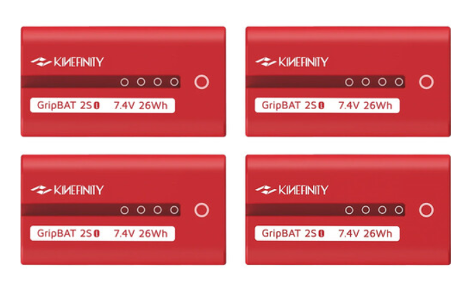 A Kinefinity GripBAT 2Si 4-csomag (A941-201-02) 4 db 3500 mAh / 26 Wh Sony L-sorozatú akkumulátort tartalmaz piros/fehér színben. 75 %-kal nagyobb kapacitású, mint az NP-F550, 5 A / 40 W folyamatos, 4 LED-es kijelző, teljes védelem. Tökéletes a MAVO Edge hibrid lemezhez, monitorokhoz, lámpákhoz – 90 perc alatt teljesen feltölthető a PD Hybrid Dual Charger segítségével.