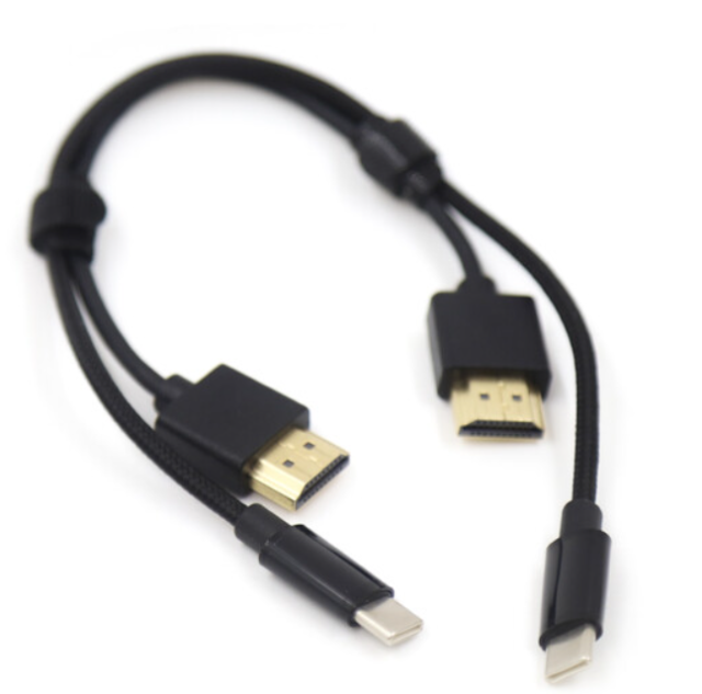 A Kinefinity USB-C és HDMI kombinált keresőkábel (K611-003-01) egy 25 cm (9,8") hosszú, burkolatos elágazó kábel. Áramellátást és Full HD videót biztosít a MAVO/TERRA kamerákról az EAGLE HDMI e-keresőre. Mindkét végén egyenes csatlakozók találhatók – tiszta, kompakt, laza kábel nélkül, gimbal és kézi felszerelésekhez.