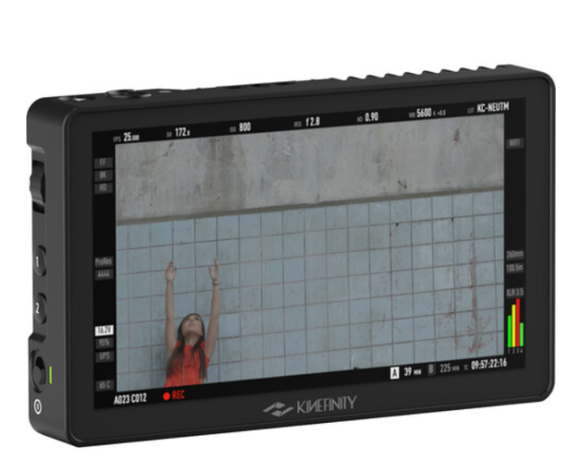 A Kinefinity KineMON 5U2 (A120-001-01) egy 5 hüvelykes, 1080p felbontású, 2000 nit fényerejű érintőképernyős fedélzeti monitor a MAVO Edge/mark2/TERRA kamerákhoz. Videó + 5,5 W teljesítményt egyetlen 14 tűs kábelen keresztül biztosít, 100 % Rec.709, 170°-os látószög, három oldalon 1/4"-20, 260 g alumínium – napfényes, ultrakompakt, tökéletes gimbalhoz és kézi használatra.