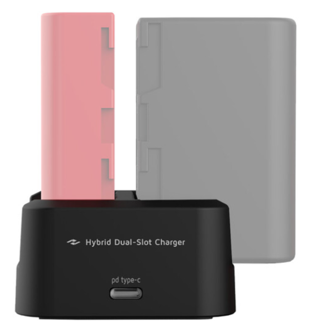 A Kinefinity PD Hybrid Dual Charger (A410-100-01) két GripBAT 2S L-sorozatú vagy 4S BP-U30 akkumulátort tölthet egyszerre, akár különböző típusúakat is. Támogatja a 60 W+ PD gyorstöltést (65 W-os adapter ajánlott), LED-jelzőkkel és USB-C bemenettel rendelkezik a hatékony, hordozható energiagazdálkodás érdekében.