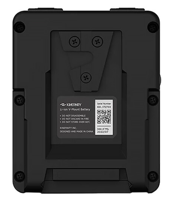 Az A430-001-01 PD KineBAT 99 új értelmet ad a kompakt V-mount tápegységeknek egy nagy sűrűségű, mindössze 590 g súlyú, 95 Wh-s lítium-ion akkumulátorral, amely kézben is elfér. 14,8 V-os kimeneti feszültséget biztosít, akár 10 A-es folyamatos árammal a V-mount csatlakozón keresztül, míg a kettős D-Tap portok és a két USB-C port (egy 65 W-os PD bemenet/kimenet, egy 30 W-os kimenet) egyszerre táplálják a kamerákat, monitorokat, lámpákat és laptopokat. 2 óra alatt 80%-ra tölthető bármely 65 W+ PD töltővel (ajánlott a Kinefinity 65 W adapter) vagy hagyományos V-mount/D-Tap töltőkkel.