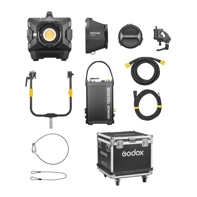 A Godox Knowled MG2400Bi SE K1 FC egy rendkívül erős, 2600 W-os, két színű COB LED-es lámpa, amelyet filmek, televíziós műsorok és nagyszabású broadcast produkciókhoz terveztek. IP54 időjárásállósággal, kategóriájában vezető 96+ CRI/TLCI értékkel és sokoldalú professzionális vezérlőkkel, köztük DMX, CRMX, Ethernet és Bluetooth funkciókkal rendelkezik, és minden színhőmérsékleten egyenletes, villódzásmentes fényt biztosít. A készlet tartalmaz egy repülőgépes szállítótokot, 45°-os reflektort és átfogó kiegészítőket a biztonságos szállításhoz és a rugalmas konfiguráláshoz a forgatáson.