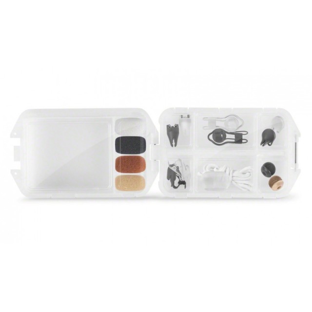 Szélvédővel és csíptetővel ellátott tok az MKE 1 mikrofonhoz.