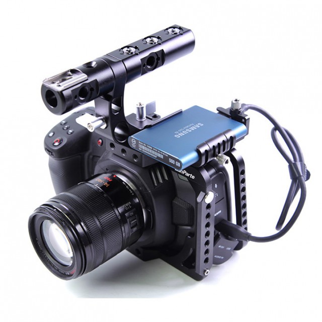 LanParte kamerarig a Blackmagic Pocket Cinema Camera 4K kamerához. 1x BMPCC 4K kamera fél cage, 1x felső fogantyú, 1x 200 mm-es pólus, 1x tartó Samsung SSD T5-hez, 1x NATO csatlakozó (45 mm). Két sor excentrikusan elhelyezett menet az alján a Ronin-S stabilizátorra való rögzítéshez stb.