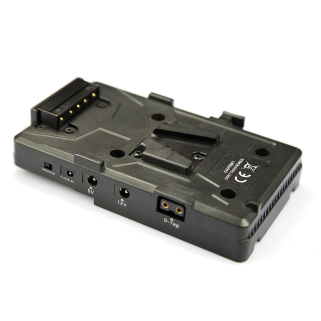 A VBP-03 V-Mount hátfal az áramellátási megoldás több kimenettel rendelkezik, a V zárral ez az akkumulátorlemez közvetlenül a kamerára szerelhető. Ez az egység hatékony tápellátást és videojel-kezelést biztosít. 12, 7,4 és 5V DC kimeneti feszültséget biztosít a különböző rig komponensek számára. A hordócsatlakozós tápcsatlakozó bemenet segítségével az akkumulátort fel lehet tölteni, miközben a kamerához van rögzítve. Akkumulátor nélkül is működtetheti az eszközt, ha a hálózati töltőadaptert közvetlenül a 15/AC csatlakozóba csatlakoztatja.
