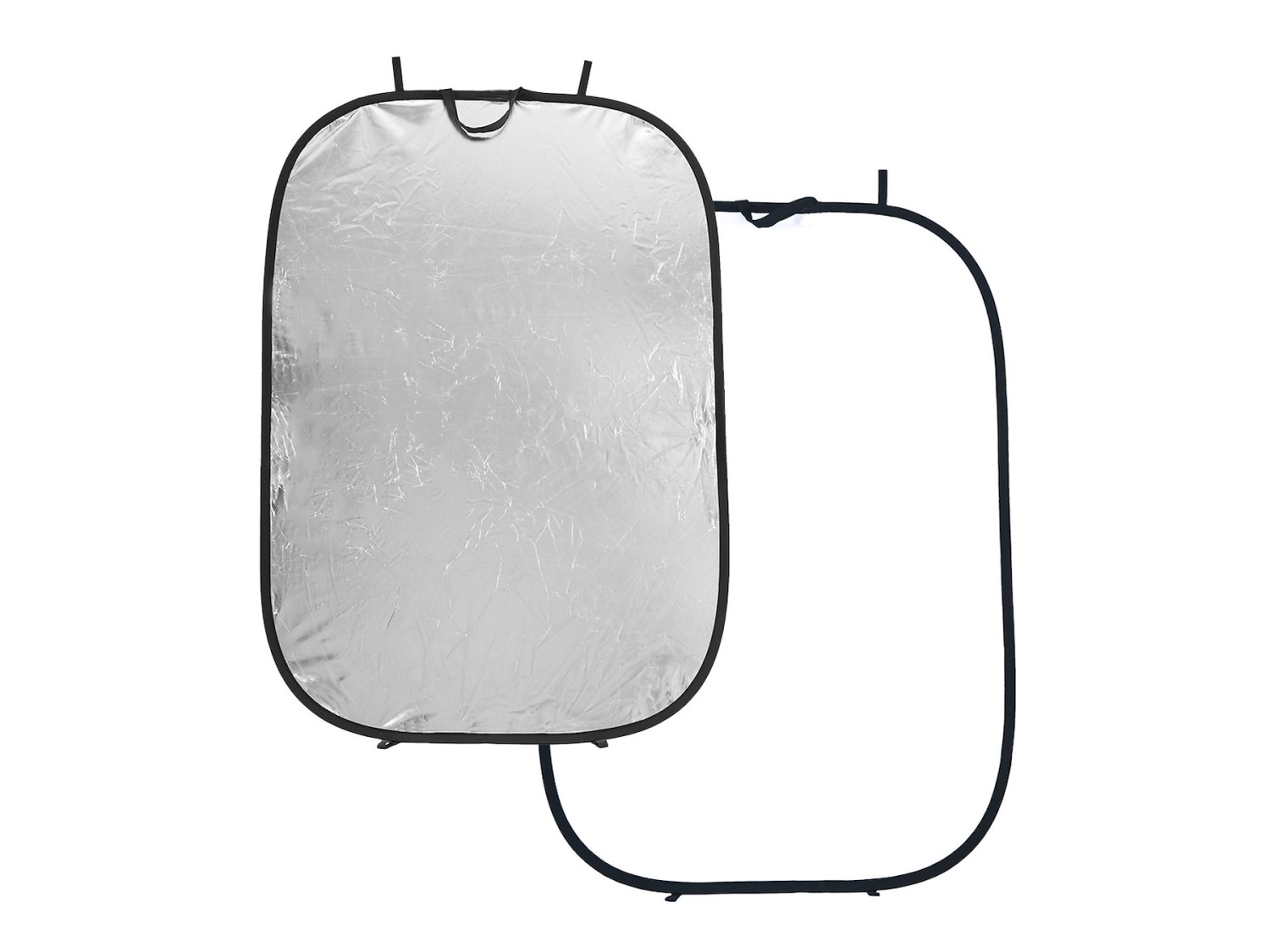 Ez a reflektor kétoldalas kialakítású, két különböző felülettel: ezüst és fehér. Az ezüst oldal világos, kontrasztos visszatükröződést eredményez hűvösebb tónusokkal, ideális a témák kiemeléséhez és élesebbé tételéhez, illetve alacsony környezeti fényviszonyok mellett. A fehér oldal lágyabb, semlegesebb visszatükröződést biztosít, így finom kitöltő fényhez és természetes megjelenésű megvilágításhoz alkalmas.