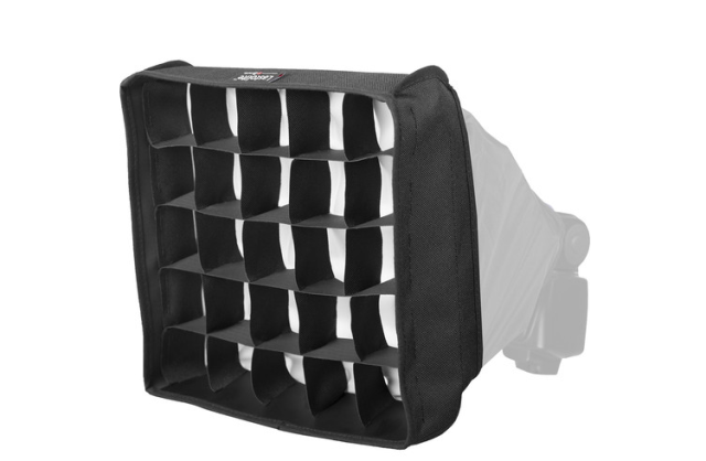 A Lastolite Fabric Grid az Ezybox Speed-Lite 2 (22 cm) modellhez egy kompakt, 2 az 1-ben fényformáló eszköz, amely irányított rácsot és beépített diffúziót ötvöz. Csökkenti a fény szórását, szűkíti a sugárzási szöget, és lágy, szabályozható megvilágítást biztosít hordozható vakufény-rendszerekhez.