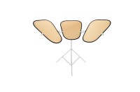 A Lastolite Triflector MKII keret, állvány és Sunfire/ezüst panelek egy komplett világítási megoldás, amelyet széles körben használnak portré-, szépség- és divatfotózásban a kontrollált, előnyös megvilágítás elérése érdekében. A rendszer tartalmaz egy összecsukható keretet, egy tartóállványt és három kétoldalas reflektorpanelt, amelyek egyenként állíthatók be, hogy a fényt pontosan oda irányítsák, ahol szükség van rá. Ez a többpaneles konfiguráció lehetővé teszi a fotósok számára, hogy csökkentsék az árnyékokat, kiemeljék az arcvonásokat, és vonzó fénycsillanásokat hozzanak létre a modell szemében.