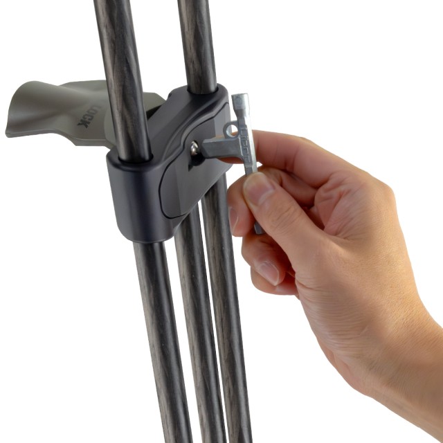 A mellékelt szerszámmal könnyenbeállítható a állvány reteszelésének erőssége. A fő előnye, hogya lábak reteszelő mechanizmusa kevésbé hajlamos a lazulásra,minta hagyományos gyorsreteszelésű állványoknál.