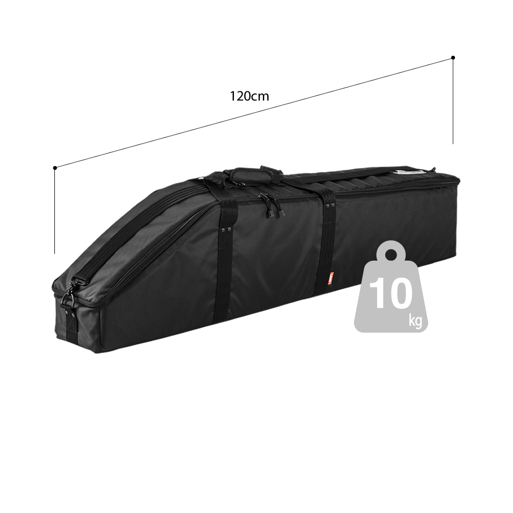 Nagyfokú hordozhatóság - Összehajtva és a megfelelő, mellékelt hordtáskában tárolva a kar mindössze kb. 120 cm hosszú, és könnyen elfér egy autó csomagtartójában. Bár a jib kar súlya mindössze 10 kg, a táska vállpántja extra támaszt nyújt, és csökkenti a szállítással járó terhet.