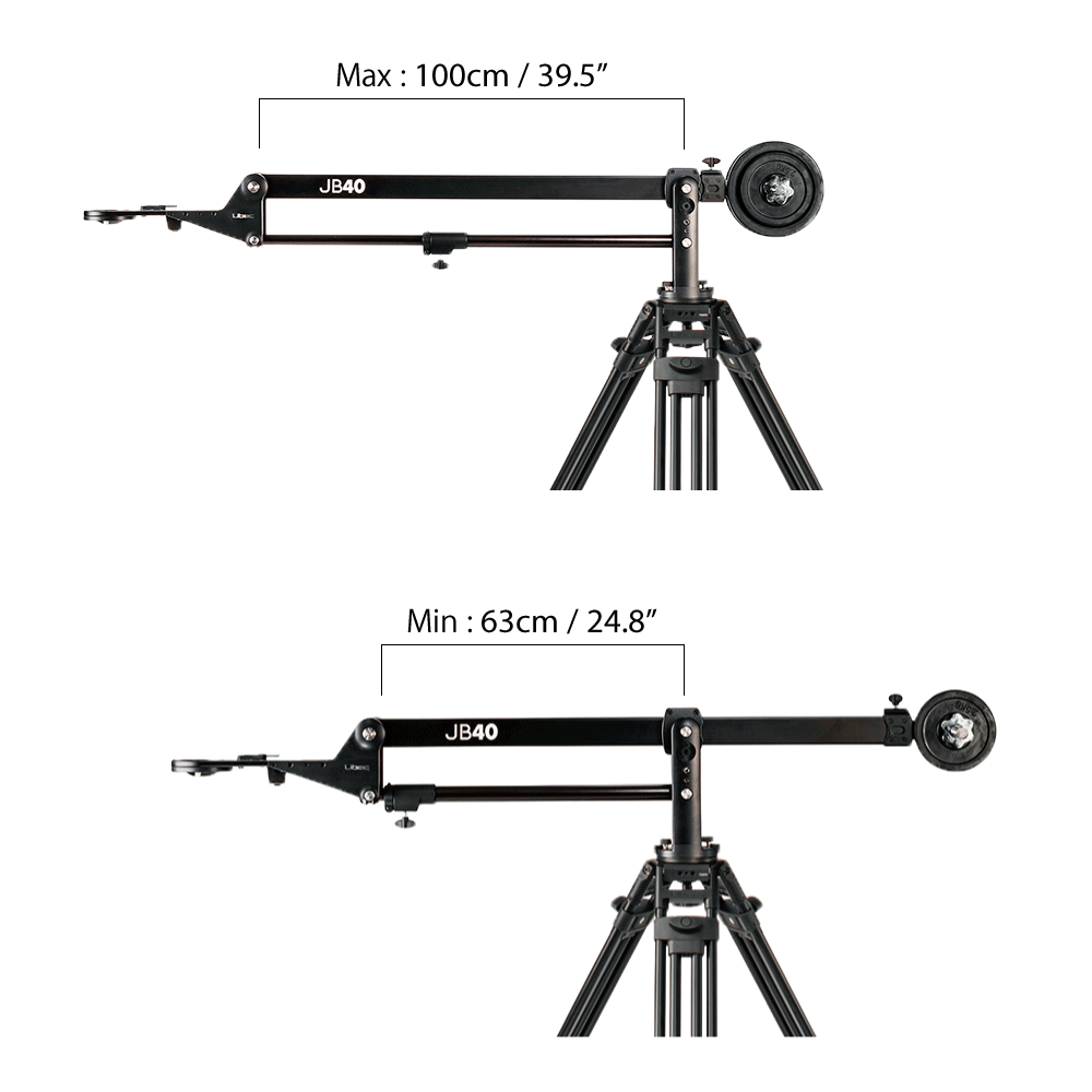 Merevség - A JB40 akár 20 kg súlyt is elbír, és úgy tervezték, hogy minimálisra csökkentse a kar imbolygását vagy hajlítását, ami egyenletes és stabil kamerafelvételeket eredményez.