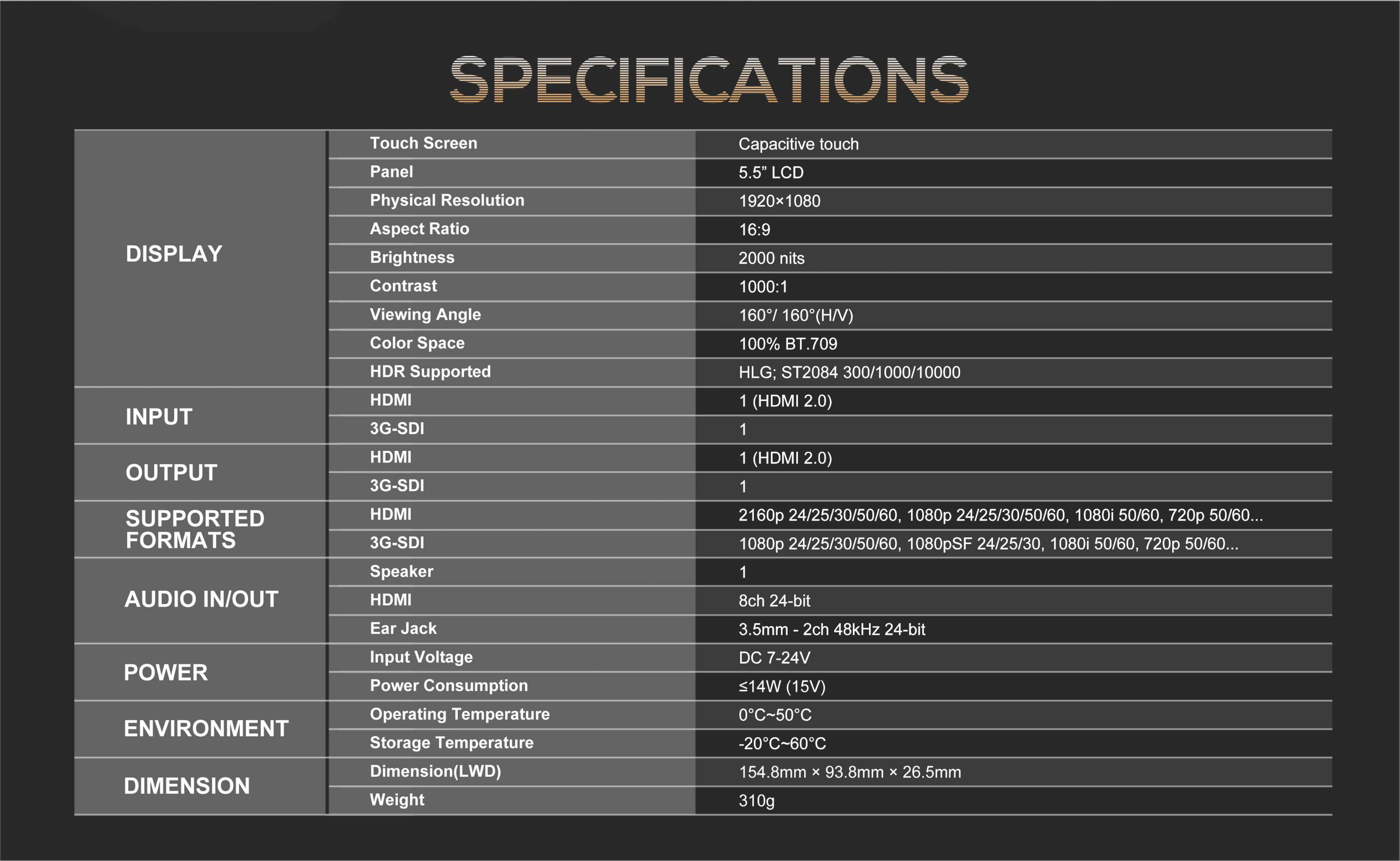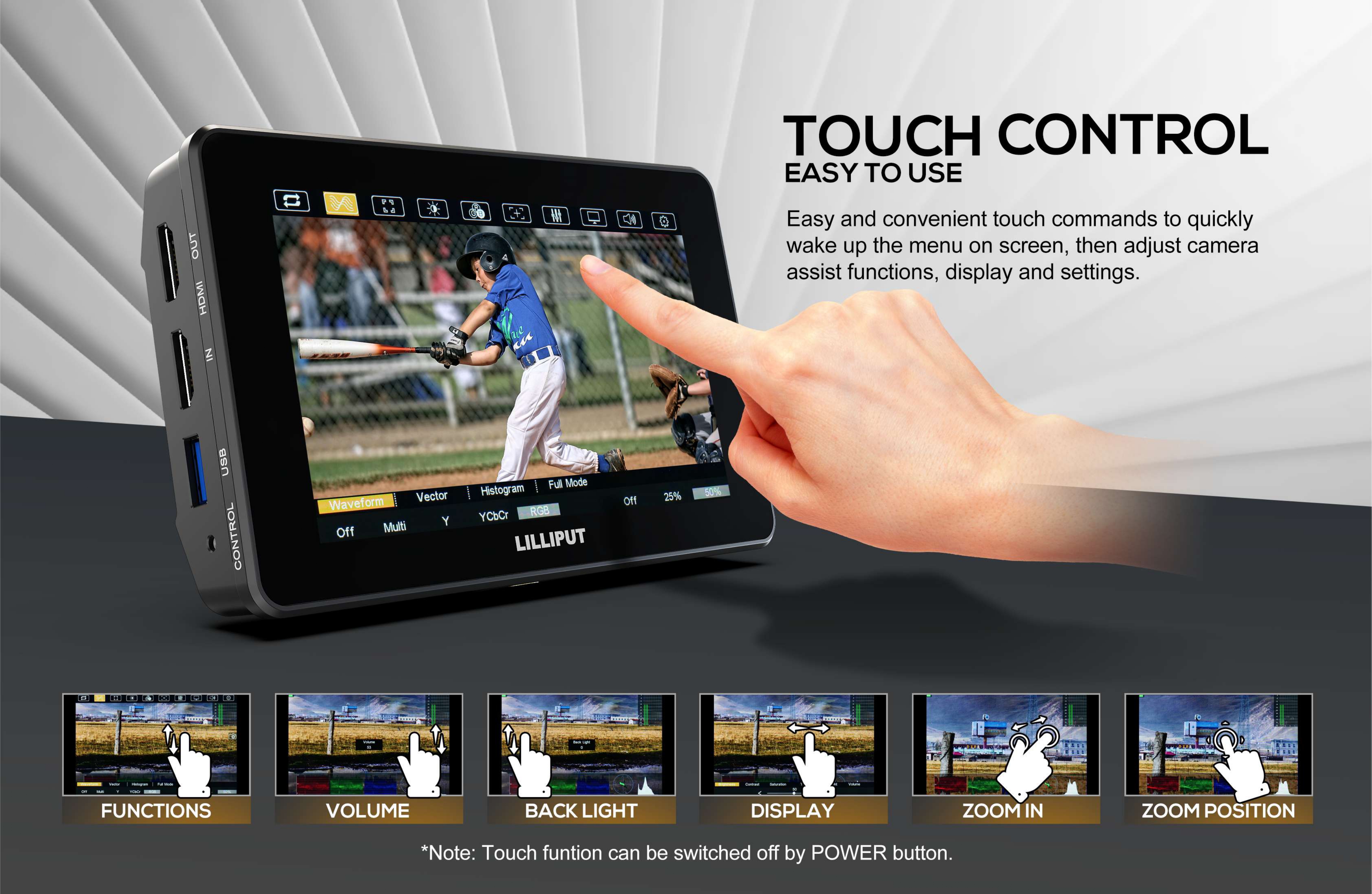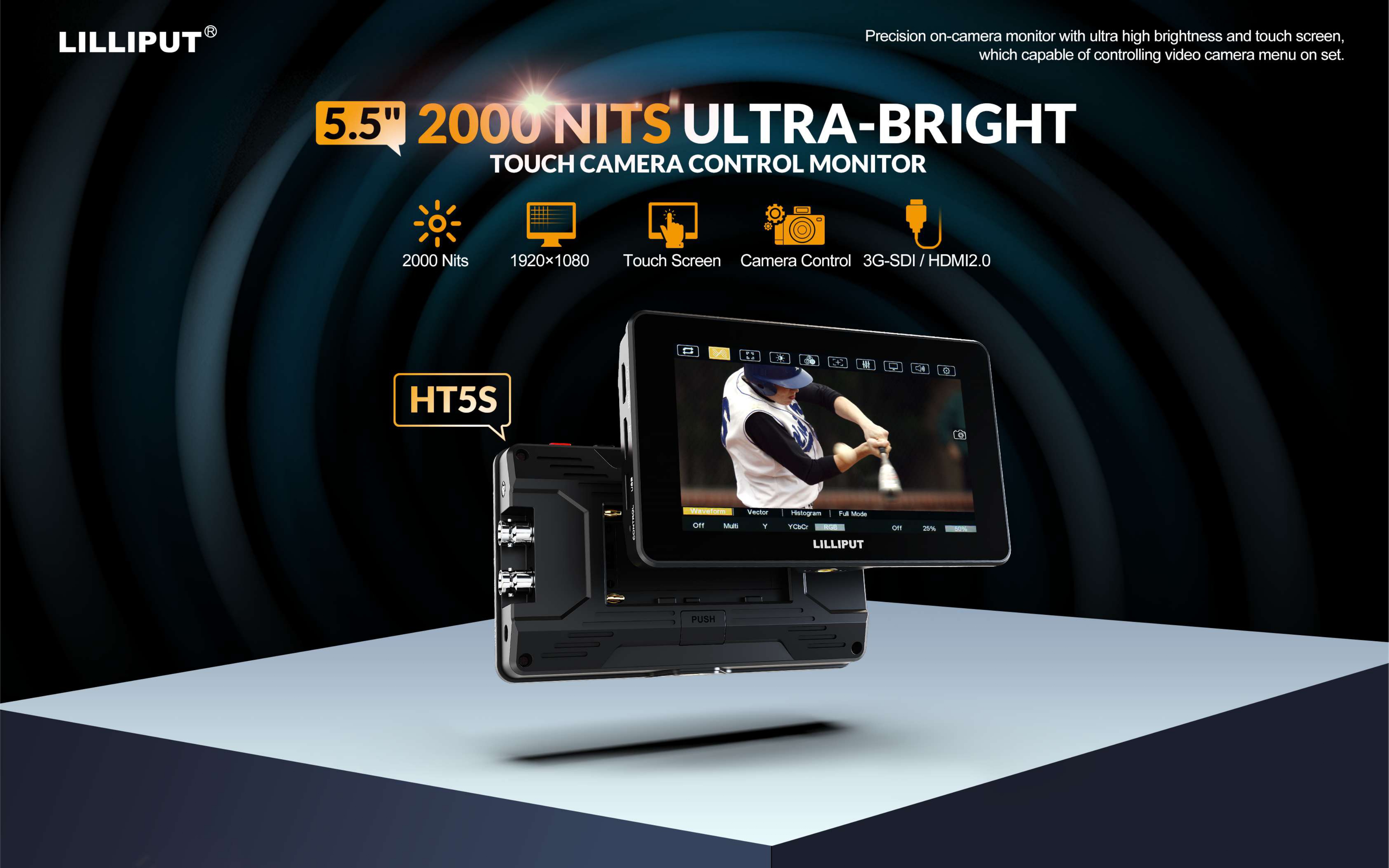 HT5S 5,5" Ultra High 2000 Nits fényerejű érintőképernyős vezérlőmonitor a kamerán