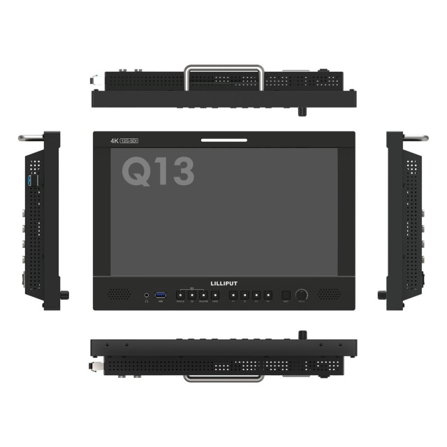 A Lilliput Q13 egy professzionális stúdiómonitor, tele funkciókkal és lehetőségekkel a professzionális fotós, videós vagy operatőr számára. Kompatibilis számos bemenettel - és 12G SDI és 12G-SFP száloptikai bemeneti csatlakozással rendelkezik a műsorszórási minőségű monitorozáshoz, Audio Vectoring funkcióval is rendelkezik, amely egy Lissajous grafikon alakot használ, amely lehetővé teszi a sztereó felvétel mélységének és egyensúlyának megjelenítését. A számítógépet is csatlakoztathatja, hogy a monitort alkalmazásokon keresztül vezérelhesse.