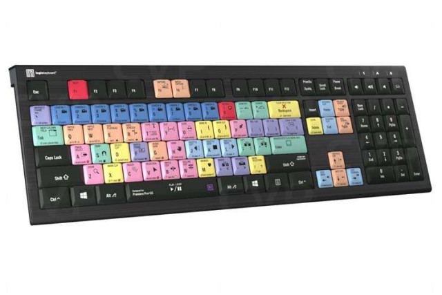 LogicKeyboard Adobe Premiere Pro CC PC Astra 2 UK – háttérvilágításos gyorsbillentyűs billentyűzet: 5 fokozatú LED háttérvilágítás, színkódolt Premiere Pro gombok, kettős USB-hubok, csendes gépeléshez ollós kapcsoló, plug-and-play Windows 7-10 rendszerekhez – növeli a szerkesztés sebességét és kényelmét bármilyen fényviszonyok között.