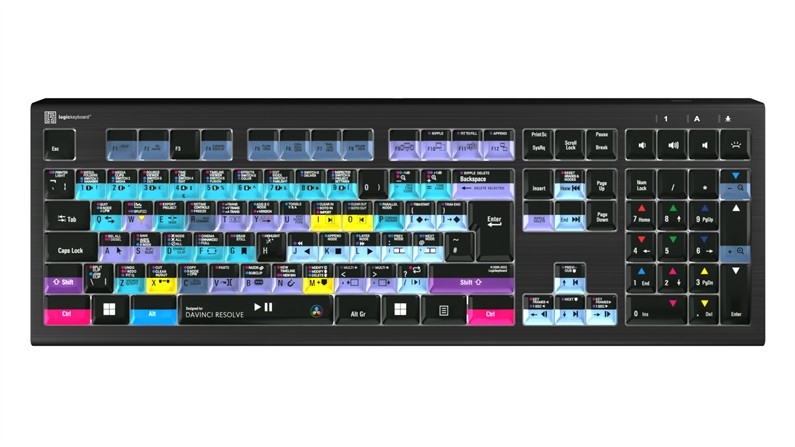 A Blackmagic DaVinci Resolve dedikált Logickeyboard is rendelkezik a hagyományos billentyűzeten található összes szokásos betű, szám és szimbólum feliratozással, egyszerűen csak helyettesítheti azt. A billentyűzet könnyen csatlakoztatható, és nem igényel szoftvertelepítést.