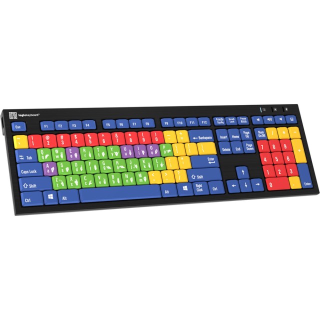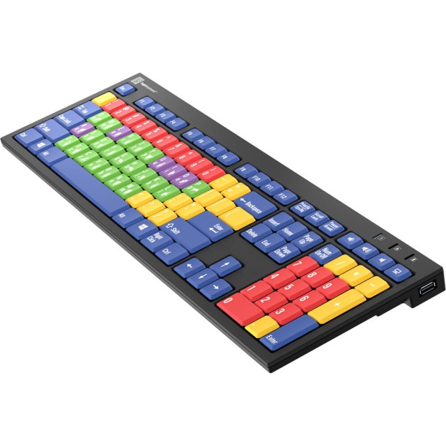 A színkódolt magánhangzókkal, mássalhangzókkal, számokkal és funkcióbillentyűkkel a Pedagógia Tanuló billentyűzet segít a felhasználónak megtanulni a betűk, számok és egyéb billentyűk helyét egy szabványos, kiváló minőségű billentyűzeten.