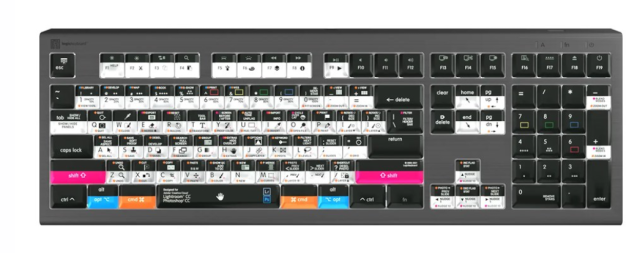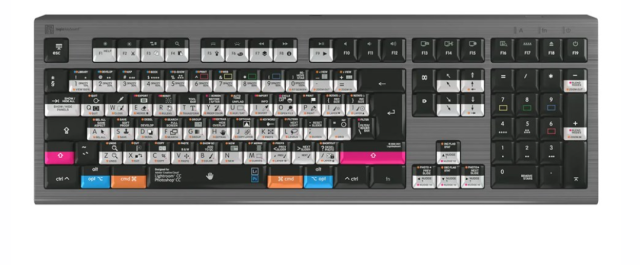 A Logickeyboard Avid NewsCutter Slim Line PC billentyűzet egy professzionális gyorsbillentyűzetes