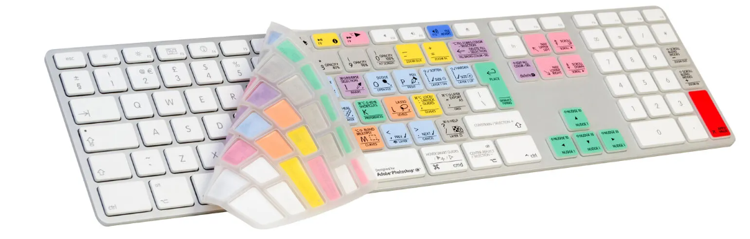 A Logickeyboard Photoshop CC Mac billentyűzetborító egy vékony, színkóddal ellátott szilikonborító, amelyet az Apple Ultra Thin billentyűzetekhez terveztek. Az Adobe Photoshop CC programhoz egyértelműen jelölt gyorsbillentyűket biztosít, miközben megvédi a billentyűzetet a portól, a folyadékoktól és a kopástól.