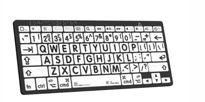 A Logickeyboard Braille/nagy betűs, fekete-fehér Mac-kompatibilis segítő billentyűzet egy kompakt, vezeték nélküli billentyűzet, amelyet a hozzáférhetőség érdekében terveztek. Nagy betűs gombjaival, dombornyomott Braille-írásjelekkel, Bluetooth-kapcsolattal és könnyű kialakításával inkluzív és felhasználóbarát gépelési élményt nyújt a macOS- és iPadOS-felhasználók számára.