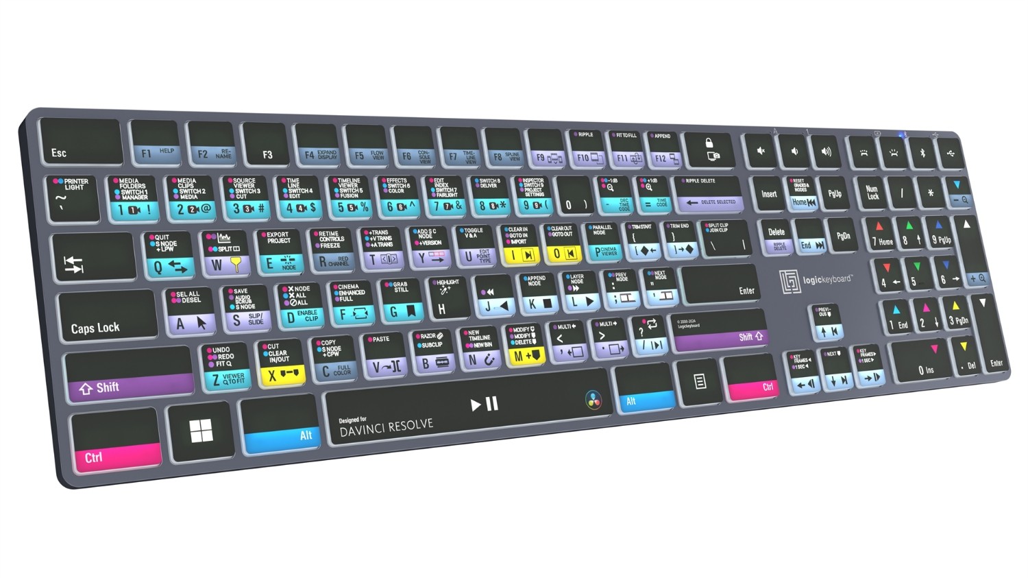 Ez a Logickeyboard a legjobb választás, ha DaVinci Resolve-ban szerkesztesz. A billentyűkre felcímkézett gyorsparancsok és színkóddal jelölt definícióik segítségével pillanatok alatt elsajátíthatod a DaVinci Resolve kezelését. A Logickeyboard ideális utómunkálati létesítmények, professzionális szerkesztőházak és mindenki más számára, aki szorgalmasan dolgozik a DaVinci Resolve-val.