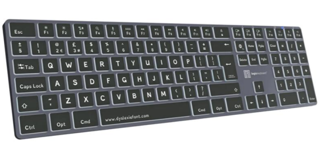 A Logickeyboard Dyslexie Bluetooth Mac segítő billentyűzet egy kifejezetten diszlexiás