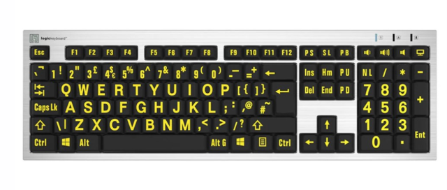 A Logickeyboard Braille/LargePrint Black on White PC-segítő billentyűzet egy akadálymentes