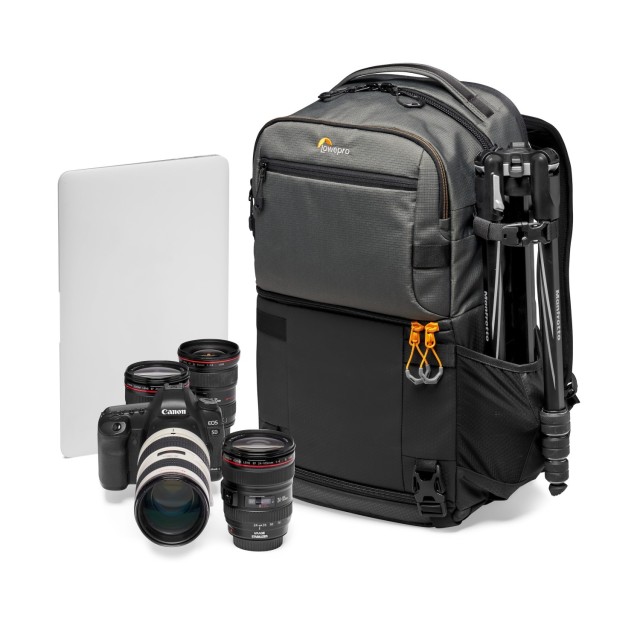 A szürke Lowepro Fastpack Pro BP 250 AW III hátizsák egy sokoldalú hátizsák, amely két fő rekesszel rendelkezik, beleértve a hátizsák alsó részén található fotórekesz, amely egy DSLR vagy tükör nélküli fényképezőgépet és négy-öt objektívet tud befogadni, beleértve a felszerelt objektívet is.