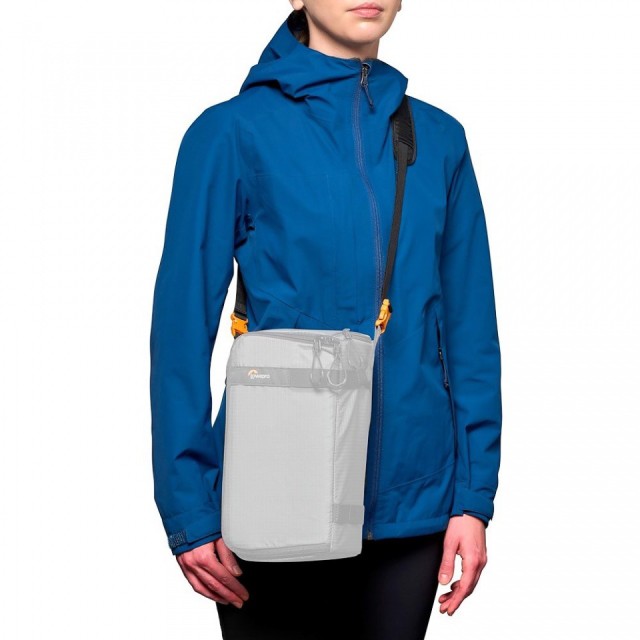 A telefontartó egyszerűen rögzíthető a Lowepro hátizsák vállpántjához, vagy rugalmas pánttal derékpántként is használható.