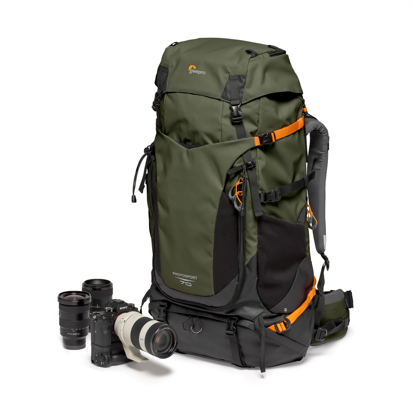 A Lowepro PhotoSport PRO 70L AW IV egy professzionális túrahátizsák, amelyet többnapos szabadtéri fotózásra terveztek. Könnyű, 86%-ban újrahasznosított anyagból készült, és elfér benne egy CSC/DSLR fényképezőgép 70–200 mm-es f/2,8-as objektívvel felszerelve, 1–2 tartalék objektív, valamint helyet biztosít egy kivehető GearUp PRO XL fényképezőgép-betétnek, folyadékpótló rendszernek és a szabadtéri tevékenységekhez szükséges alapvető felszereléseknek.